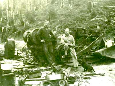 The first two frames are actually the same photo enlarged a bit differently. They date to 1951 and show Fred Slanger and Denny Olstedt operating a pair of D8's recovering an oldgrowth log along what was known as the California Barrel -- between Jewell and Olney. Special thanks to the Baker General Store for providing this frame.