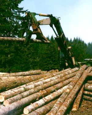 With track pads 3 feet wide it floats better than the Drott 80's, but is less mobile than the rubber tired mounted Drott's. It is generously powered with a Detroit Diesel 6V71T engine. Joystick controls and lots of capacity make log handling effortless. The joysticks operate small servo hydraulics so any function (except the travel which is run with foot pedals) works with the flick of a finger. The grapple rotate and grapple open/close operative with electric thumb switches on the ends of the joysticks. The elevated cab is of particular benefit for logging operations and may be tilted forward to lower the height of the machine for hauling.