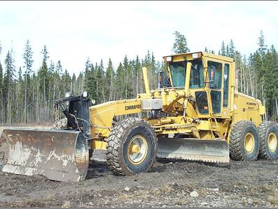 Front wheel drive is particularly useful when you have a front blade. Without the blade something like 80% of the grader weight is on the rear wheels,but with the blade the balance shifts forward quite a bit, and the front drive keeps from from getting stuck with a front wheel behind a wet rock.
