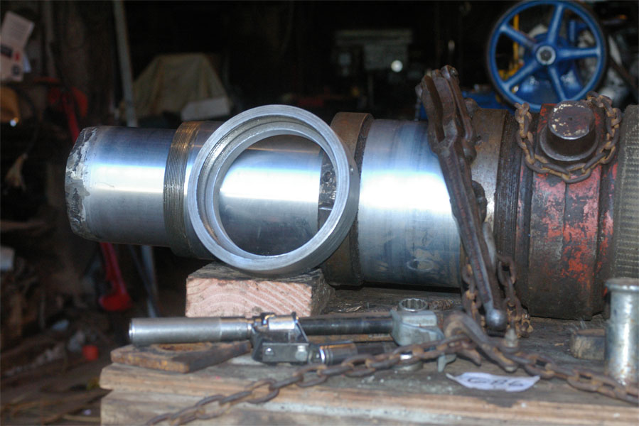 Although the end of the cylinder has a lift plate on it for spreading the left on the ground, the end of the cylinder is pretty much on the ground and mud and rocks between the left plate and the end of the cylinder destroyed the packing ring around the lower stage of this cylinder.