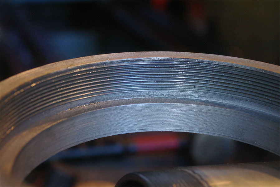 Since the trailer is 40 years old and the maker of the cylinder is unknown, buying a part or replacing the cylinder involves more than stopping at Walmart. Making a new ring to hold the packing in the bottom stage was the first productive task of our 'new' century old American lathe.