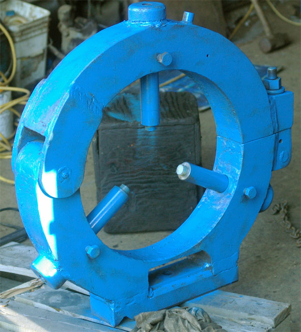 The follow rest actually bolts to the back of the carriage and will travel with the work. This follow rest is unique in that it has a place for its own cutter.