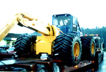 For 1997, they redesigned the hydraulic system completely. The 1997 model Morgan skidder features a 4 pump system -- one variable displacement pump for each wheel. Sensing devices measure the steering angles and feed the data into the an on board computer which then assigns the right amount of oil flow to each wheel so as to provide even power to the wheels regardless of whether they need to turn at the same speed -- as in when you are driving straight- or they need to turn at differing to facilitate a turn. The computer also monitors the engine RPM and if the engine is overloaded, it will back off on the speed a bit to allow the engine to maintain RPM instead of allowing the engine to die.
