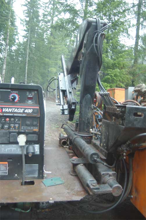 In the photos it sort of looks like a lot of space between the welder and the crane but in reality it is just about enough to get in there and check the oil in the welder when the crane is stowed. Since these photos were taken we have built a small protective cage around the welder to guard it a little from the possibility of getting slapped by an errant crane boom.